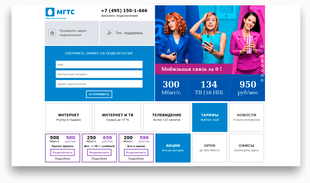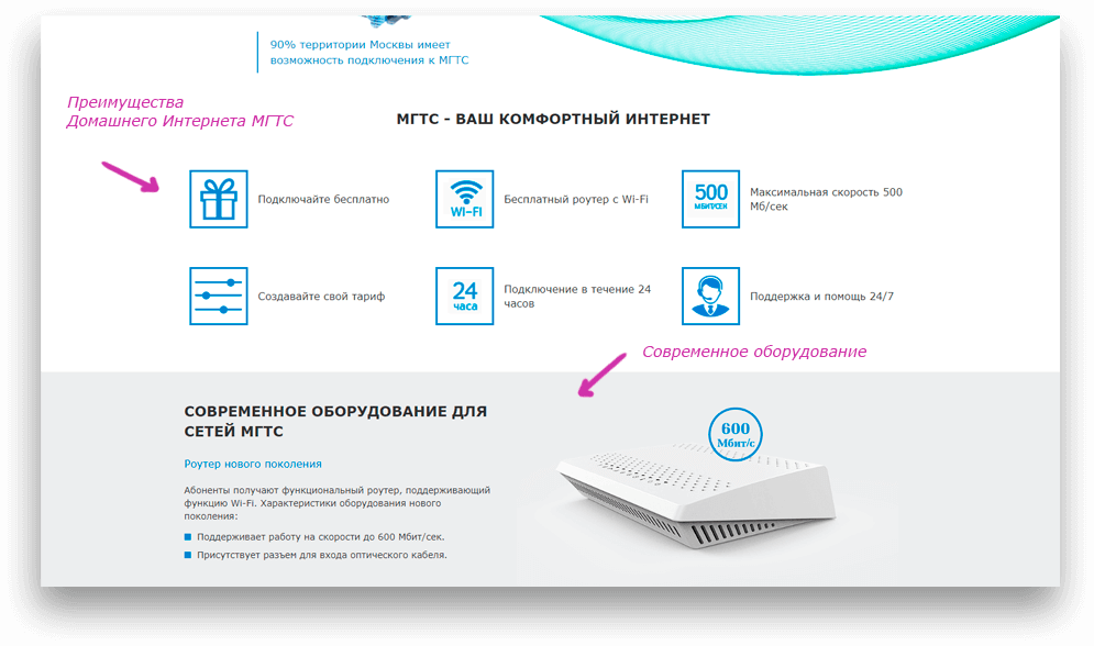Интернет-подключение при помощи провайдера МТС осуществляется бесплатно и в течение суток после подачи заявки. Вы получите бесплатный современный Wi-Fi-роутер, способный работать в условиях современного мегаполиса и обеспечивать высокую скорость обмена данными с проводными и беспроводными устройствами, расположенными в различных помещениях. Помимо возможности сконструировать свой собственный тариф, вы сможете пользоваться самым быстрым Интернетом в Москве, при этом качество соединения будет оставаться на таком же высоком уровне.