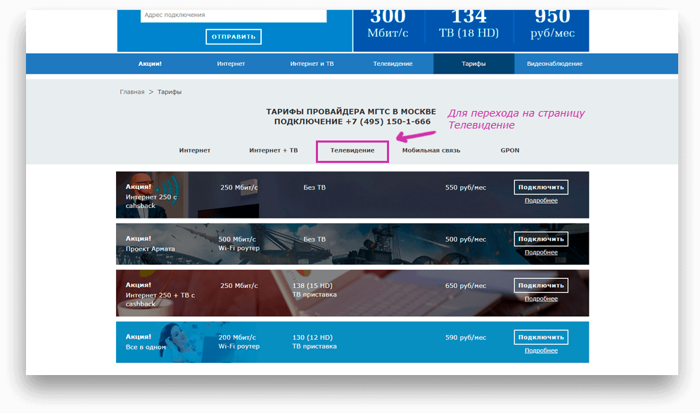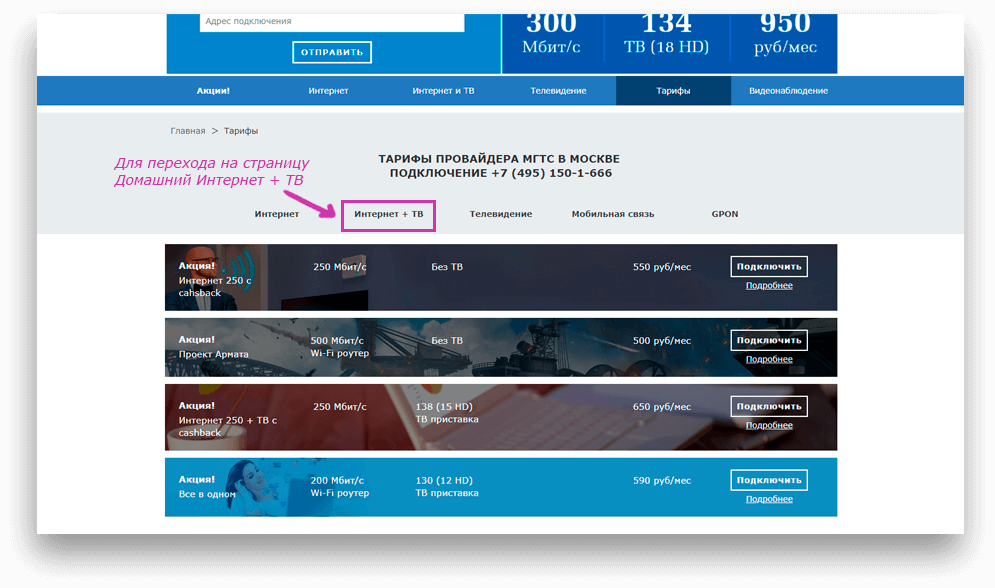 Абонентам – физическим лицам провайдер MGTS предлагает широкий спектр тарифных планов. При этом помимо уже готовых вариантов клиенты имеют возможность собрать свой собственный комплект услуг, которые они хотят получить. С подробным описанием тарифов для той или иной услуги вы можете ознакомиться, нажав на соответствующую кнопку.